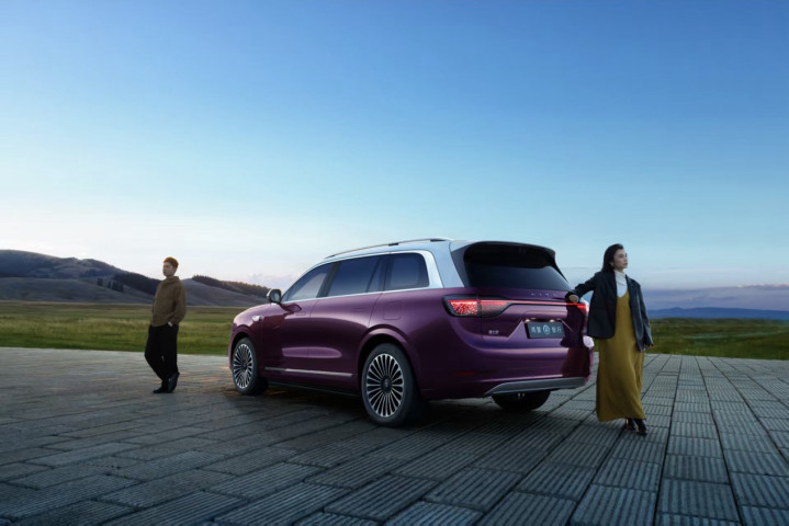 问界M9新推出的银境紫车色采用撞色设计,车顶、A柱与D柱为银色涂装,与主体紫色车身交织,既有金属的科技质感,也有紫韵的典雅尊贵。颜色会随着灯光和角度变化,静态时优雅,行进间带着流动的高贵感。